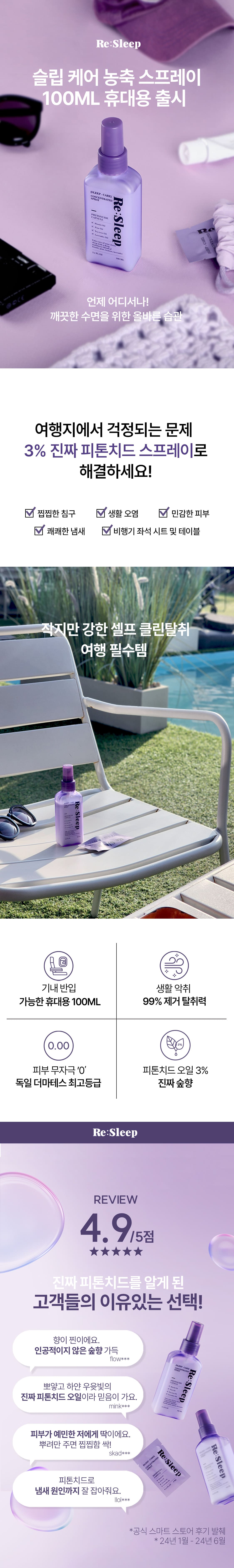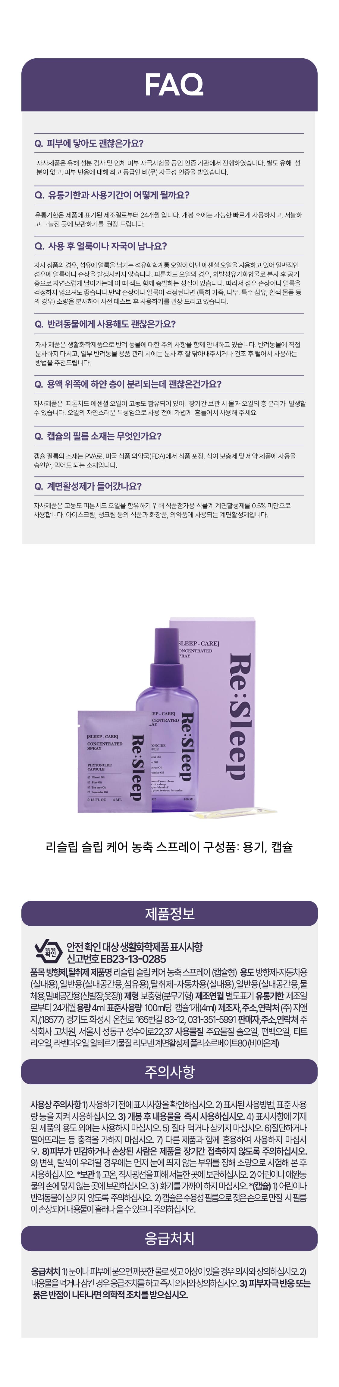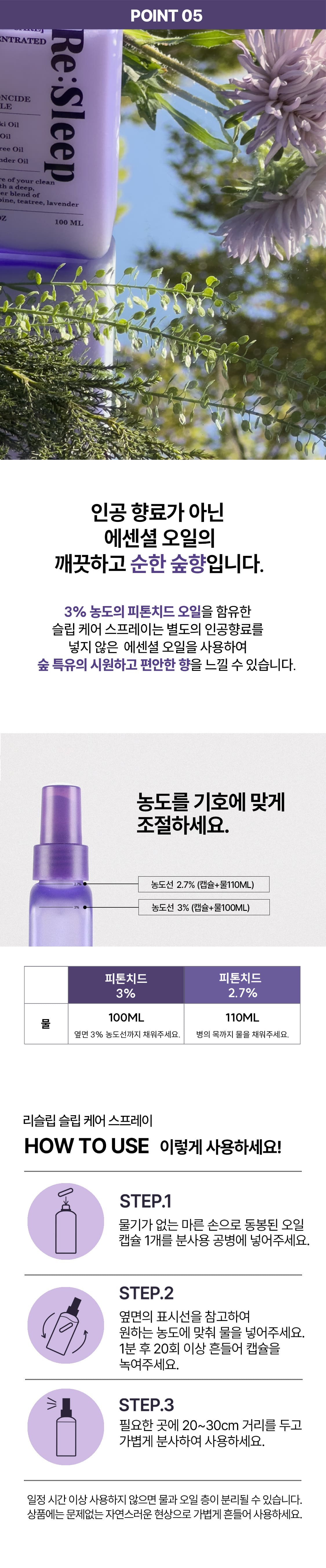 리슬립 슬립케어 피톤치드 농축 스프레이 100ml(오일 3% 캡슐형)
